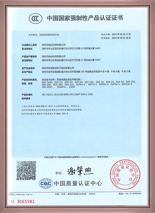 SG-2000Px 分布式可视化操作系统 CNAS证书