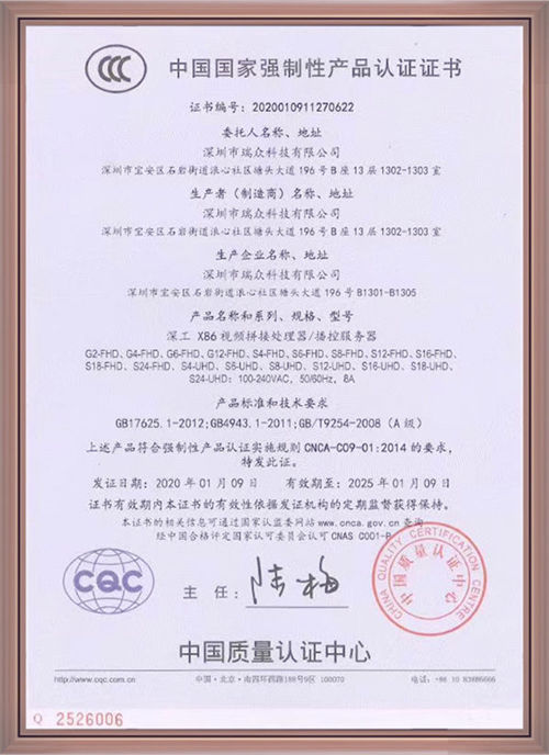 深工视频服务器3C中文证书